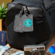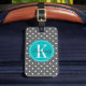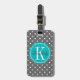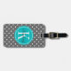 Étiquette À Bagage Point Polka gris avec Monogramme Turquoise