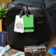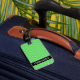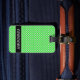 Caractéristiques de conception ce de bagage d'étiquette qu'impliquer de motif beaucoup vert pointille/entoure. Il comporte également un nom personnalisé sur l'avant, et a personnalisé des détails de contact sur le dos.
