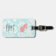 Étiquette À Bagage Porc rose mignon ; Damassé turquoise