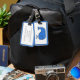 Cette mignonne étiquette à bagages comporte une baleine à bec dans les tons bleus. Personnalisez avec votre choix d'informations de contact sur le dos.