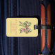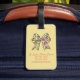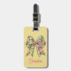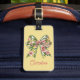 This fun personalized luggage tag features a beautiful floral bow in soft watercolor shades of pink and green on a background of soft yellow. Personalize with your choice of name on the front and special text on the back.