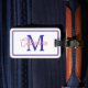 Étiquette À Bagage Preppy Pink and Navy Blue Simple Monogram
