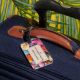 Beautiful and colorful tulips, roses and hydrangeas highlight this text box framed luggage tag.