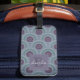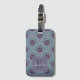Retro circle pattern in subdued tones of purple and green on stylish personalized luggage tag.