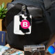 Quirky cool black and white cow spots pattern with bold hot pink monogram.