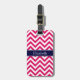 Étiquette À Bagage Raspberry Lg Chevron Marine Nom bleu Monogramme