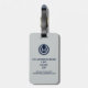 Motif gris-clair et blanc de rayure avec le monogramme de logo de guirlande de laurier de bleu marine. Le bagage personnalisé étiquette - les supports assortis de passeport également disponibles :