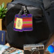 Faites ressortir vos bagages sur un carrousel d'aéroport avec des étiquettes uniques ! Cette valise aux couleurs brillantes est décorée d'un motif rayé orange, violet, jaune, rouge, vert, violet et noir qui ressemble à un beau motif arc-en-ciel abstrait. Customisez l'envers avec vos renseignements personnels.