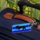 Étiquette À Bagage Rayures bleues de laboratoire noir espiègle