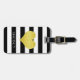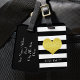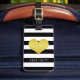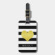Étiquette de bagage personnalisée rayures noires et blanches Faux cœur en or.