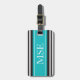 Étiquette À Bagage Rayures personnalisées de noir de turquoise de