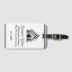This professional realtor luggage tag is custom made with your real estate company name under the modern cursive script for an open house. These trendy minimalist white and black realty business promotional gifts feature a house logo image for a home builder or realty agent company marketing.