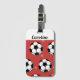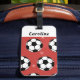 Étiquette À Bagage Red Soccer Winter Ball & Snow Striped Athlete Nom