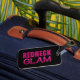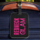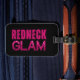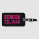 Étiquette de bagage amusante pour les "filles de la campagne" qui aiment vivre fort et chic ! Texte "Redneck Glam" en rose avec l'apparence de paillettes roses épaisses sur le fond noir glamour.
