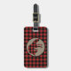 L'arrière - plan sur cette étiquette de bagage est un motif rouge et noir de buffle plaid. Au centre se trouve une bannière en cercle bronzé avec une silhouette plaid rouge et noir assortie renard sautant. Le dos de la balise est noir avec deux champs pour que votre texte personnalisé facile à lire en blanc.