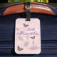 Étiquette À Bagage Respire simplement les papillons Feuille rose