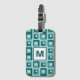 Étiquette À Bagage Retro Blue Geometric Squares Pattern Monogram