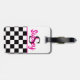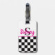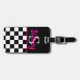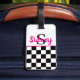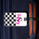 Étiquette À Bagage Retro Checkerboard Neon Pink Name Monogram