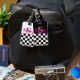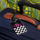 Make a statement on the court with this retro-inspired luggage tag featuring a bold black-and-white checkerboard pattern and vibrant hot pink Name Monogram text. Available in both black and white background options, this eye-catching design combines sporty energy with vintage flair. Perfect for players who love a fun, confident look while showing off their competitive side.