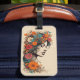 Étiquette À Bagage Retro Girl avec des fleurs dans ses cheveux