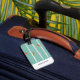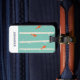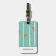 Marque de bagage personnalisée avec illustration de bouleaux avec des orangers assis sur leurs branches. Arrière - plan vert rétro.