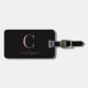 Élégant Monogramme d'or rose moderne chic sur une étiquette de bagage noir chic. Facile à customiser avec votre propre nom et vos détails. Parfait pour votre luxe ! Veuillez nous contacter à cedarandstring@gmail.com si vous avez besoin d'aide pour la conception ou les produits correspondants.