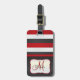 Étiquette À Bagage Rouge du monogramme |, rayures blanches noires