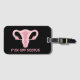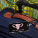 Une étiquette de bagage avec un message à la Cour Suprême des Etats-Unis et le renversement de Roe v. Wade. Graphique en utérus rose avec "f*ck off SCOTUS"