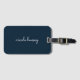Étiquette À Bagage Script bleu marine | Moderne Monogramme élégant