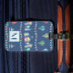 Whimsical illustrated pattern of a cheerful village decorated with bunting for a summer gala with colorful sailboats and hot air balloons. Personalized luggage tag. (see matching passport holder)