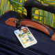 This “See You Later Alligator” personalized luggage tag is a fun addition to any bag or suitacase. Featuring a charming watercolor cartoon of a friendly alligator at the airport, the tag combines playful style with practical customization. The alligator luggage tag makes a cute novelty gift or stocking stuffer. Personalize the front with a name, and the back (double sided option only) with your name and contact details.