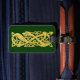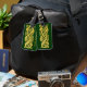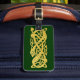 Cette étiquette de bagage avec la courroie comporte un motif celtique antique d'un serpent d'or enroulé sur un arrière - plan vert-foncé. Personnalisez avec un nom de votre choix. La couleur d'arrière - plan peut être changée avec la personnaliser il bouton.