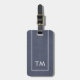 Élégante étiquette de bagage bleu personnalisable avec cadre blanc et monogramme gras.