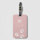 Étiquette À Bagage Simple élégante patte de chien mignonne rose Monog