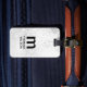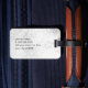 Élégante étiquette de bagage bleu personnalisable avec monogramme gras.