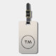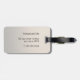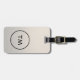 Élégante étiquette de bagage gris personnalisable avec cercle noir / monogramme gras et arrière - plan faux argent.