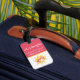 Customisez ce joli bloc coloré, soleil jaune avec lunettes de soleil, étiquette bagage avec vos coordonnées.