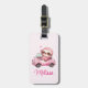 Une étiquette de bagage avec une illustration fantaisiste. Un paresseux rose qui circule dans une décapotable rose. Adorable.