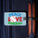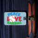 Peace Love Baseball écrit en vert, rouge et bleu avec une balle pour le O in Love sur un cadeau de la Ligue de la Petite cool. Offrez ce sport présent à un entraîneur ou à une maman de baseball pour Noël.