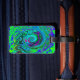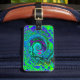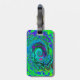 Étiquette À Bagage Super Abstrait Retro Green et Blue Swirl