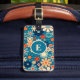 Retro Garden Super Floral Joyeux 60s les années 70 Motif étiquette de bagage, personnalisée avec l'initiale sur le devant et le nom et l'adresse e-mail (ou autre texte) sur le dos. Fleurs esthétiques optimistes, vives et vintages avec une ambiance des années 1960 et 1970. Peut être personnalisé et customisé. Par Kierkegaard Design Studio.