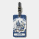 Étiquette À Bagage Superbe château floral Bleu toile de jouy monogram