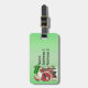 Cette étiquette à bagages personnalisée pour vos valises est verte avec un traditionnel Père Noël tenant une enseigne verte qui dit Joyeux Noël debout à côté d'un petit arbre de Noël entouré de petits animaux mignons, dont des oiseaux, un lapin lapin et un écureuil.  Customisez votre nom et votre adresse avec le modèle.