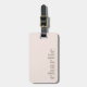 Marque de bagage moderne et minimale avec votre nom ou texte personnalisé aligné verticalement à droite sur un arrière - plan rose très léger et muet.