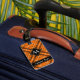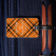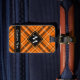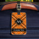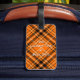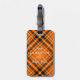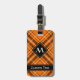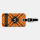 Échantillon de tartan moderne orange et noir halloween. Texte et monogramme personnalisés.