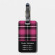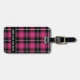 Marque à bagages tendance avec un motif en tartan rose, noir et blanc à l'avant et à l'arrière. Sur le devant est un modèle en lettres blanches pour ajouter votre propre texte. Sur le dos de la balise sont des modèles pour ajouter vos détails.