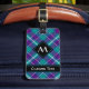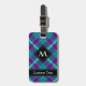 Étiquette À Bagage Tartan vert de mer, violet et bleu