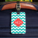 Étiquette À Bagage Teal White Chevron Coral Quatrefoil 3 monogram