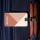 Étiquette de bagage moderne avec des formes géométriques dans des tons de terre cuite et de crème et votre nom ou texte personnalisé dans une police rétro.