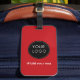 Téléchargez votre logo sur cette étiquette de valise personnalisée de fête en couleur rouge de Noël. Des idées cadeaux d'entreprise, d'affaires et de clients faciles à modifier avec votre logo personnalisé. Faites la promotion de votre entreprise, de votre entreprise, de votre magasin avec votre propre marchandise et réjouissez vos clients, partenaires d'affaires, employés.